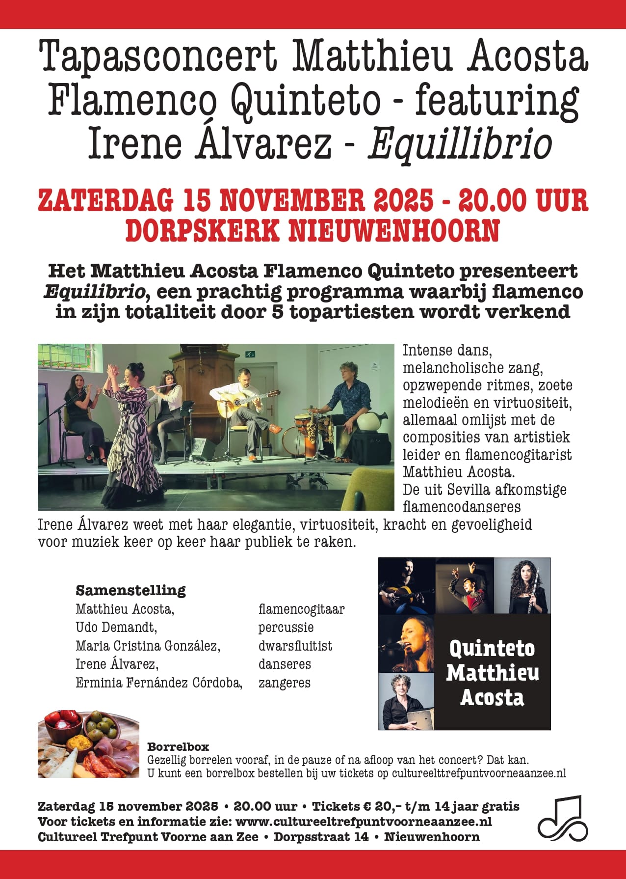 Het Matthieu Acosta Flamenco Quinteto presenteert Equilibrio, een prachtig programma waarbij flamenco in zijn totaliteit door 5 topartiesten wordt verkend.